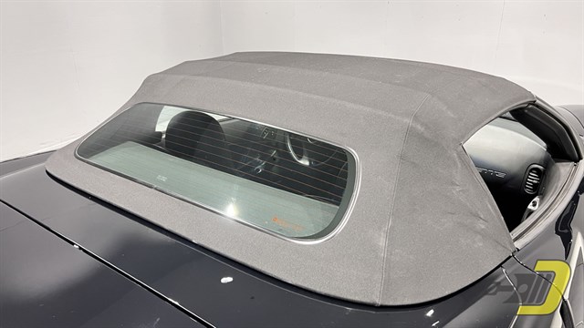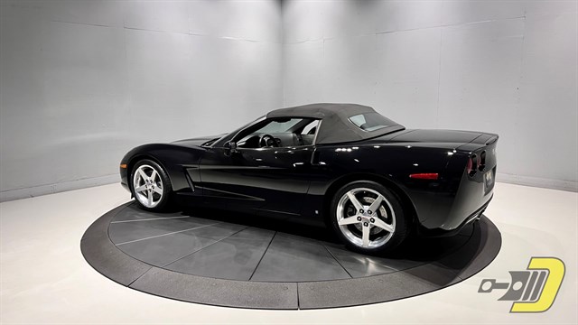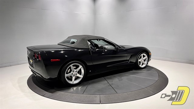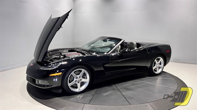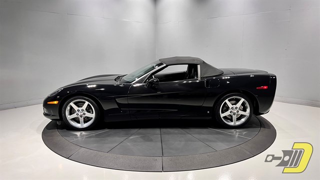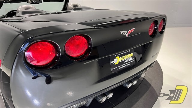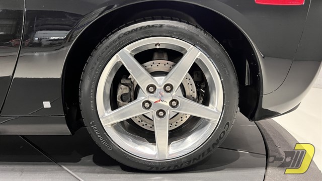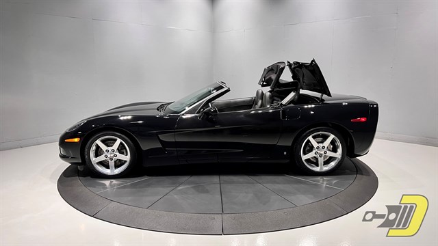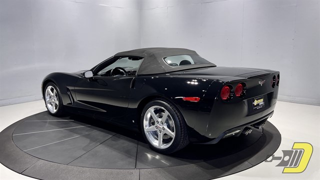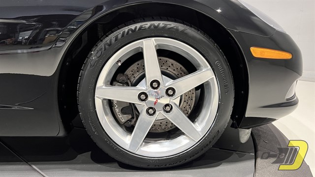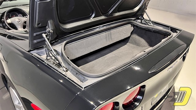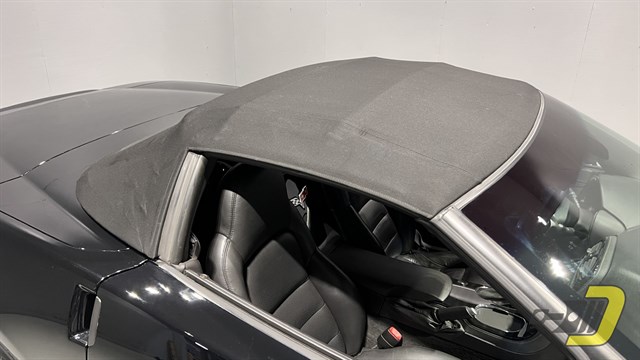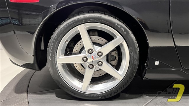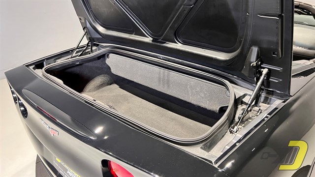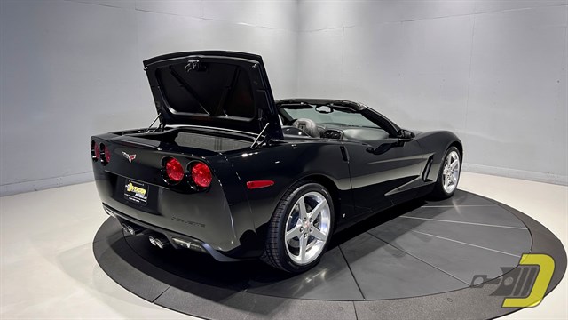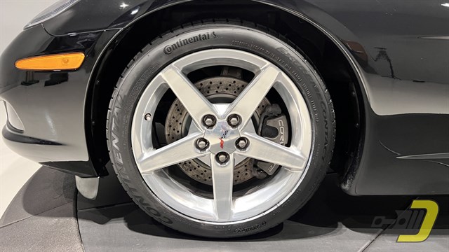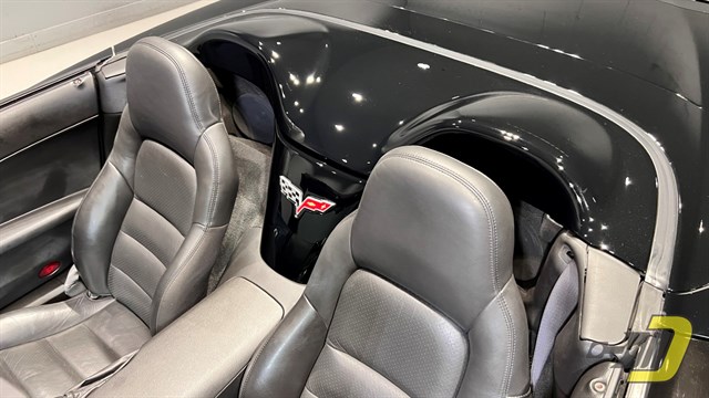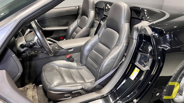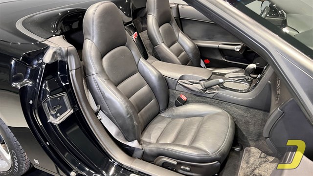 The C6 convertible presents a very clean shape, more streamlined than its predecessor and with an exotic flair.  This example has its original black paint along with a power black convertible top that works great and is neat to watch.  It leaves a clean decklid surface when lowered along with the “waterfall” between the bucket seats.  The headlights and fog lights are crystal clear, having been recently replaced due to the typical fogging and cracking with this design.  The 5-spoke aluminum wheels wear brand new Continental ExtremeContact tires– one of the best street tires available.