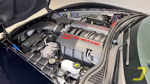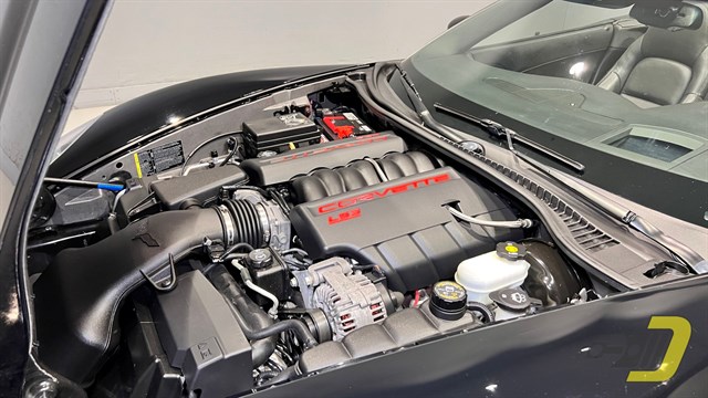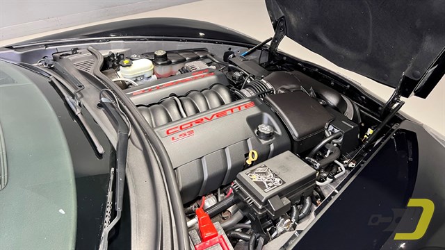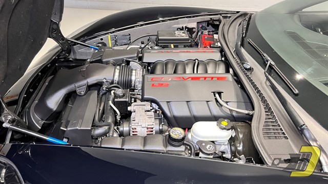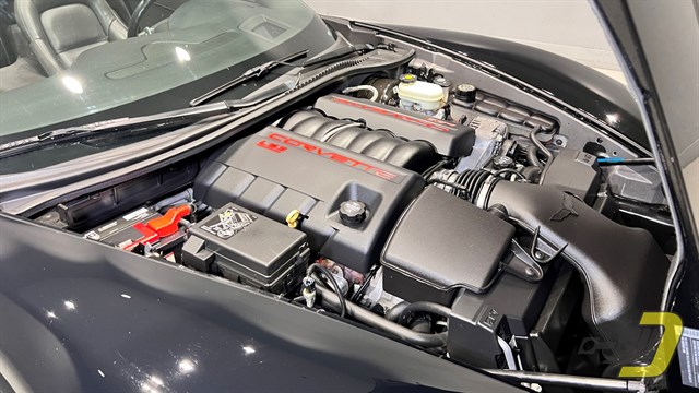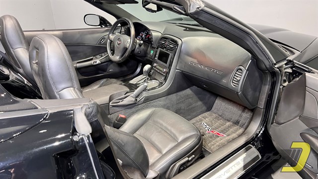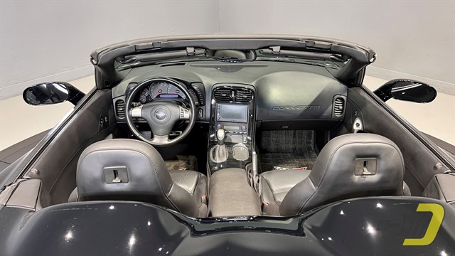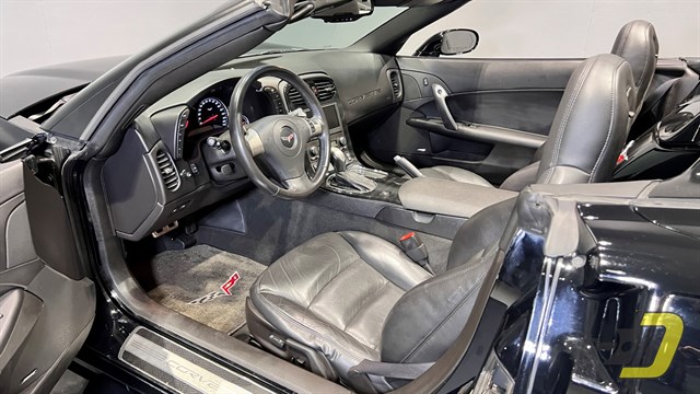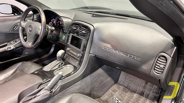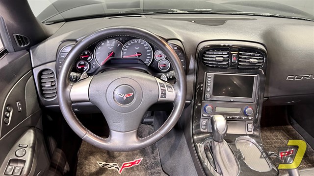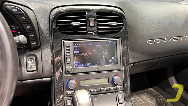 The black leather interior is in very good condition throughout.  This one is equipped with the top-of-the-line 3LT package which includes power / heated sport seats along with a head-up display and telescoping steering column.  There is also the optional AM/FM/CD sound system with navigation and a touch-screen interface.  Of course, all the standard C6 goodies are present as well including dual zone climate control.  Aftermarket touches include a carbon fiber look center dash bezel and upgraded floor mats.  All manuals are present along with both keyfobs and a silky black car cover.