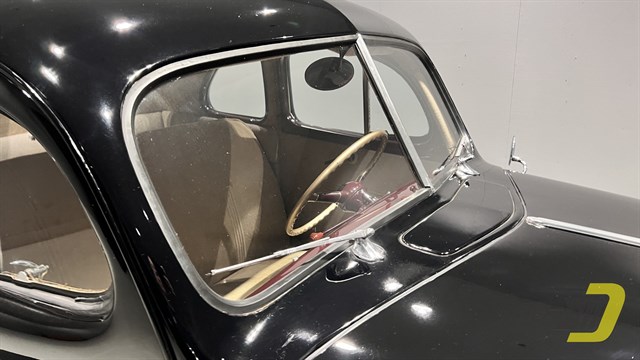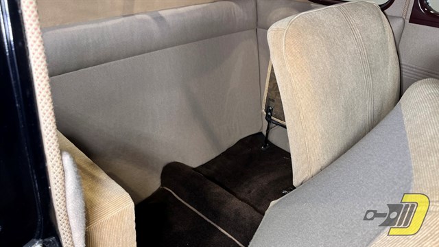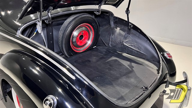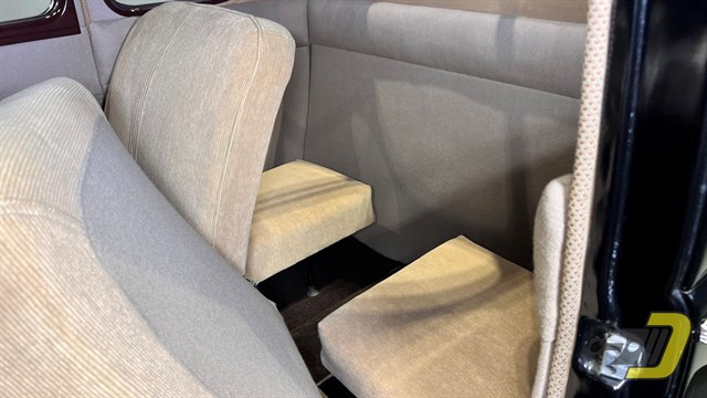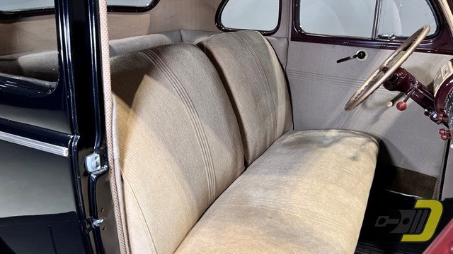 This rust-free Business Coupe has an all-steel body with a solid frame and floors. It has seen plenty of refurbishment over the last 85 years. The older black paint still shines nicely as do all the chrome and brightwork. As a Deluxe model it offers a more ornate grille along with windshield trim and dual taillights. Note too the bumper guards and front beauty bar. The red wheels are fitted with polished trim rings and center caps and wear bias ply whitewall tires.