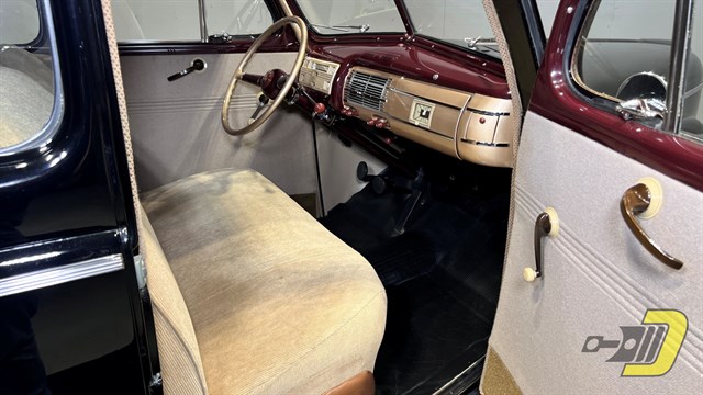 The engine is a 221 cubic inch Flathead V8 coupled to a 3-speed manual transmission. The engine starts easily and runs like a champ. It has been rebuilt at some point and upgraded with 59A-B cylinder heads. Note the helmet style distributor too. There is also an auxiliary electric fuel pump to help with cold starts and periods of non-use. Everything remains stock including the 6V positive ground electrical system. All mechanical systems retain the factory design.