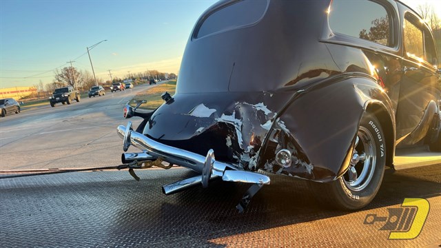 This one is a sad story. This 1936 Chevrolet Master sedan was literally on its way back from paint and body in anticipation of delivery the following day when it was rear ended while waiting to make a left turn. Fortunately, nobody was seriously injured, but the car is a different story. The damage is too much for us to pursue repairs. However, this steel-bodied car still runs and drives (though not very fast) and retains a clean title (1936 Chevrolet). There is definitely some value here.